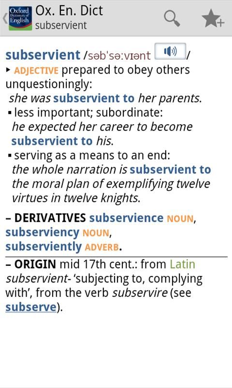 *** 50% Off - limited time offer *** The leading single-volume English dictionary, the Oxford Dictionary of English is the foremost authority on current English usage. * Offers the most comprehensive coverage of English from around the world * Completely revised and updated to include the very latest vocabulary, with over 350,000 words, phrases, and meanings * Thousands of words and senses derived from the latest research from the Oxford English Corpus, giving the most complete and accurate picture of the English language today * About 75,000 audio pronunciations of both common and rare words, doubled with both British & American voice versions, including words with controversial pronunciation or with variant pronunciations This edition includes thousands of brand-new words and senses, as well as up-to-date encyclopedic information. Readership: Ideal for anyone who needs a comprehensive and authoritative dictionary of current English; for professionals, students, academics, and for use at work or at home. A search tool: Featuring various search options to help you find the words you need more easily, including: * A quick search of words while you type * A 'fuzzy filter' for when you are not sure of the correct spelling of a word * A 'keyword' search for finding key words within phrasal verbs * A wild card search facility which can replace a letter or a group of letters A learning tool: The dictionary app includes a number of features which help you to expand your vocabulary further: * A 'Favourites' feature allows you to create your own categories and lists of words * Your last visited words are all saved in your 'History', so that you can quickly look back at recently checked words * Discover a new word every day with the 'Daily' feature * Ability to have dictionary Word of the Day as a widget on the device home screen * See words in context with example sentences * Online and offline modes supported; the offline mode allows you to download the whole dictionary and work independently from data connections A mobile dictionary application from MobiSystems with content from Oxford University Press. * Small apps extension for Sony products
