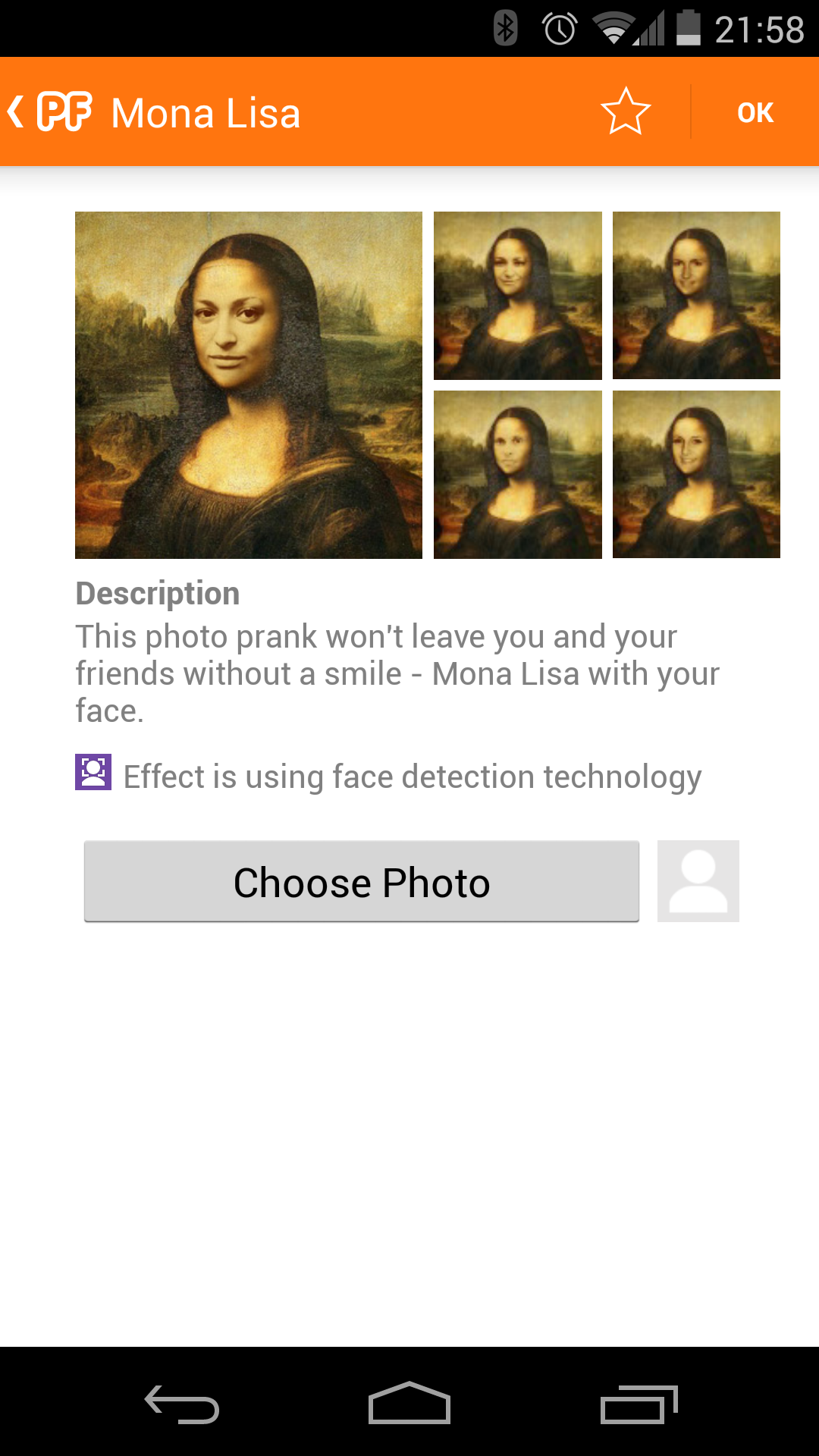 PhotoFunia is the best way to add a spark to your photos, make them special and more original. In only a few seconds an amazing photo collage is ready, absolutely free. PhotoFunia is so straight forward to use, that anyone, at any age, can use it with ease. Would you like to see your picture on the cover of a magazine or on advertising billboards of Times Square? How amazing will it be to see your portrait on the walls of Louvre or Hermitage museums? Want to try out an astronaut or a Santa suit? Or you prefer something more exotic, just like a dancer at the Rio's carnival? Excited to find out how good you look with a witch's hat or a queen's crown on? Perhaps you're just looking for a nice frame for your photos on a special occasion? Make your own mark on the sand or write graffiti text on the wall, carve your name on the ground or create your very own road sign using our fantastic text effects. To add shadows, age your photo or render it black and white just visit Filters category. A myriad of hundreds of effects is waiting for you. Our effects library is always expanding and every week you can find something new. As previously mentioned, using PhotoFunia couldn't be simpler: pick you desired effect, upload your photo and viola! All in all in just two simple steps and you have your very own work of art ready to save, send via email or share with your friends on a social site. Take PhotoFunia with you wherever you go and create stunning images on your mobile or tablet with our great mobile apps. Note: All image manipulation is performed in the cloud therefore WiFi or 3G connection is required for application to work.
