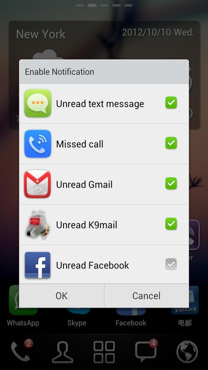 A plugin of GO Launcher EX to show number of missed calls, unread SMS and Gmail. GO Launcher Notification is an independent plugin of GO Launcher EX. It can help you to be notified of the number of missed calls, unread messages and unread Gmail. When you get any missed calls or messages, it would show the total number of them on the icons on home screen and dock bar. Features: - Show number of missed calls, unread messages and Gmail - Support icons on dock bar and home screen - Independent plugin Important: 1. This is a totally free application and we need the permissions to read SMS, Gmail and miss call record. 2. Latest version of GO Launcher EX is required. (Search "GO Launcher EX" to download) 3. To apply the notification: MENU> Preferences> Advanced settings> GO Launcher EX Notification 4. You can download themes of GO Launcher to get the wallpaper showed in sceenshots. 5. It can only support missed calls, unread SMS and Gmail for the time, we will make it available for Email, K-9 mail and Facebook in near future. -------Important-------- The Gmail app has updated to new version and the API we uses to access your Gmail in our Notification app is being removed in Gmail. We will continue support Gmail notification if your Gmail app doesn’t update to the newest version. But once your Gmail is updated, the notification option will be removed from GO Launcher.