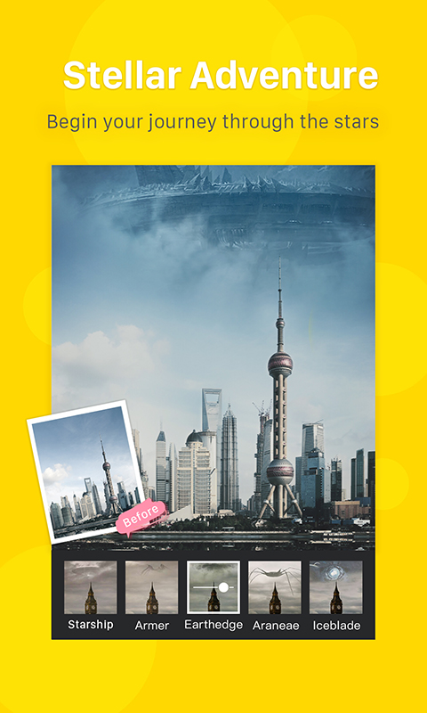 500 million users around the world, with excellent ratings AKB48 highly recommended, and many Japanese and Korean stars (like BTS) remain loyal users of Camera360 Long-term ranked number 1 on photography ranking charts in 7 countries; recommended in 13 countries; a global trend-setter for mobile photography! ====== Feature Highlights ====== 【Classic Filters】 Don’t settle for ordinary! Put some magic into your photos, stunning visuals are just one stroke away! # Over 100 classic filters, become a photography connoisseur # New filter management function, allows you to save, delete and prioritize filters; satisfy your personal preferences # Star Story, Magic Effect and Storm HDR, among other exclusive innovative filters 【Selfie】 Say goodbye to those fake looking photos, and get ready for natural skin effects! # Touch screen capture: tap anywhere to take a picture # Light filler: take selfies at night # One stroke beautify: face thinning, eye enlargement and skin smoothing, all with just one tap; instantly become a goddess! # 3D facials: highlight facial contours, to make your features more refined and exquisite 【Functions】 SLR photography experience, what are you waiting for? Say bye-bye to those old, heavy traditional cameras! # Multiple integrated functions: smart scene recognition, real-time blur and vignette # Capture: lightning fast focus; manually adjust exposure and focal length # Advanced adjustments: professional level white balance and aperture adjustments 【Edit】 Never doubt your own potential. Don’t know how to use Photoshop? No problem! Just move your fingers around a little and you too can become a Photoshop master! Crop, rotate, color temperatures, tones, etc. among 10 professional adjustment functions. For suggestions please contact us at support@pinguo.us or Follow us on Instagram: http://instagram.com/camera360_official Like us on Facebook: https://www.facebook.com/camera360official Follow us on Twitter: https://twitter.com/Camera360