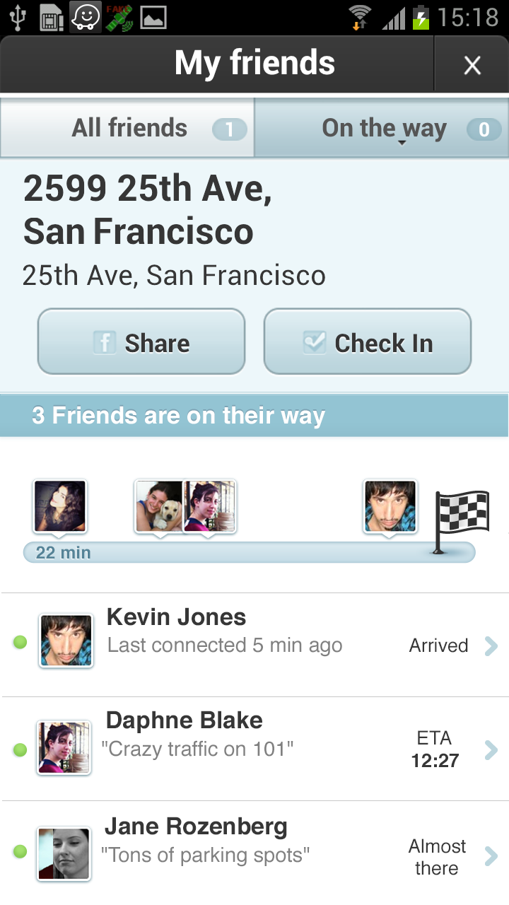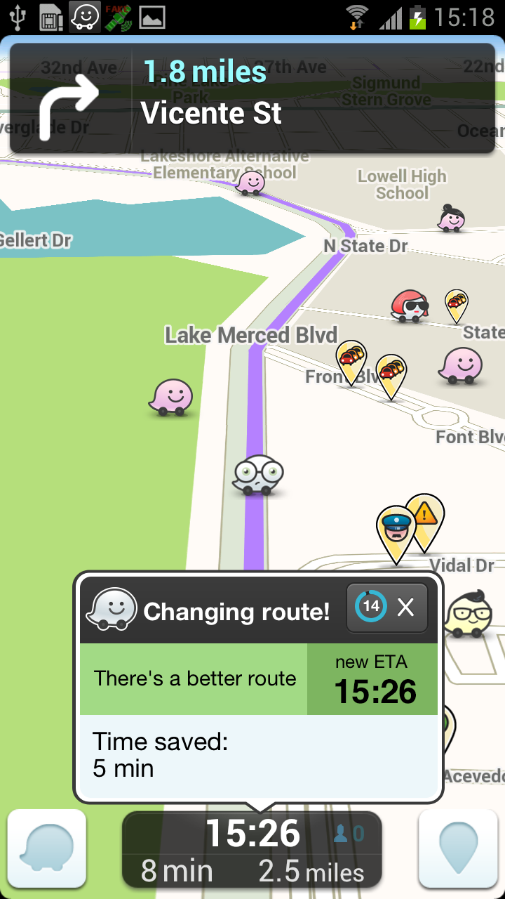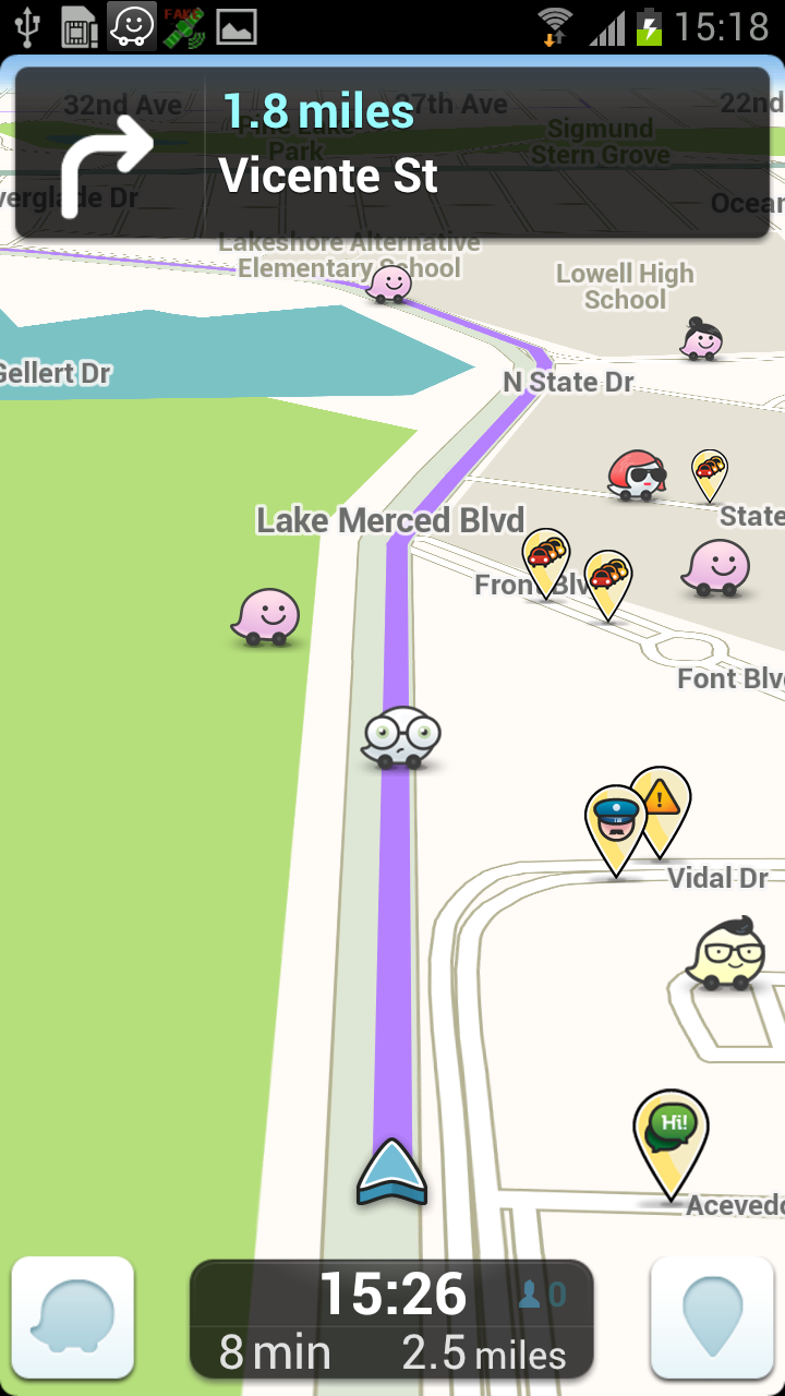Waze is one of the world's largest community based traffic and navigation apps. Join drivers in your area who share real-time traffic & road info to save time, gas money, and improve daily commuting for all. Just by driving with Waze open, you're already contributing tons of real-time traffic info to your local community. You can also actively report accidents, police traps and other hazards you see on the road. Get road alerts on your route, and find the lowest gas prices around you with community-shared fuel prices. Plus, Waze makes it fun and simple to meet up and coordinate with friends on the road. * Live routing based on community driven, real-time traffic & road info * Community reported alerts including accidents, hazards, police traps, road closures, and more * Turn-by-turn voice guided navigation * Live maps, consistently edited and updated by Waze community map editors * Automatic rerouting as conditions change on the road * Learns your frequent destinations, commuting hours, and preferred routes * Find the cheapest gas station on your route * See friends’ ETA when driving to the same destination * Send automatic updates on your location & ETA * One tap navigation to Facebook & Calendar events * Earn points to climb the ranks in your community as you contribute road info Waze is all about contributing to and benefiting from the common good, so hop on board and get involved! Note: Continued use of GPS running in the background can dramatically decrease battery life. Waze will automatically shut down if you run it in the background and haven't driven for a while. Learn more about the Waze privacy policy, including what information is accessed and how it is used. With Waze, you have full control over your privacy settings. http://www.waze.com/legal/privacy/ What’s new in 3.8? Keeping up with friends & family is easier than ever before! Put an end to pesky texts and calls – “Leaving now,” “Stuck in traffic,” Almost there!” – and let Waze do the work for you. * Find friends on Waze by adding Contacts * Send friend requests & manage your list * New design for sending location * Locations sent between friends are saved for future navigation * Easily share drive from ETA screen * See who’s viewing your shared drive * Keep Waze on screen when answering calls * Bug fixes