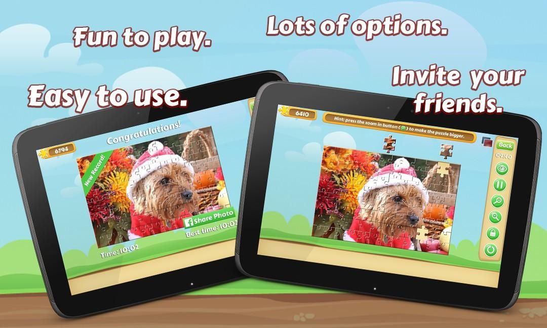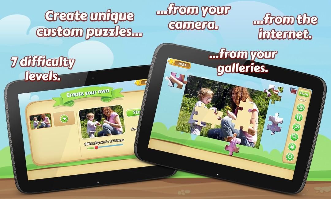 Jigsaw Puzzles Saga - the best jigsaw puzzle game ever created! • all features in this game are free, there are no purchases required; • find images on the Internet, create and play your own puzzles; • over 400 beautiful images from 18 different collections; • use your own photos to create unique jigsaw puzzles; • play up to 7 levels of difficulty (294 puzzle pieces) for large screen tablets.Tired of paying for jigsaw puzzles? This game is for you!Play the classic jigsaw puzzle game for free and live an experience like no other for this kind of game!Features: • over 400 images to choose from (more coming soon); • difficulty levels: up to 300 puzzle pieces (available for large screens); • take a photo from your camera and create a unique puzzle; • browse for images on your device and create your custom puzzle; • zoom in and out capabilities, making it easier for you to play; • autosave function will make sure you never lose your progress. • lock the board if you want it to stop moving; • achievements and leaderboards powered by Google Play Game Services; • set highscores and compete against other players; • post your custom jigsaw puzzle images on Facebook; • invite your friends from Facebook to play.Your opinion counts, if you have any ideas that could improve this game or you see any problems with it, please leave a comment on our Facebook page or send us an email.Facebook: https://www.facebook.com/jigsaw.puzzles.gameEnjoy it!