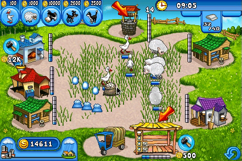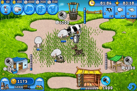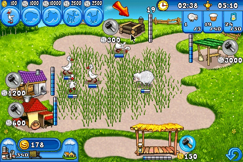 Have you ever wondered what it would be like to run your own fully working farm? Looking after chickens, sheep and cows, producing cakes, wool, butter and cheese. If you fancy giving it a go without having to get up at the crack of dawn every day Farm Frenzy is the game for you! In the style of time-management games like Diner Dash you’ll have to work hard to achieve your goals, whether that’s owning a certain number of animals, producing a specific number of goods or simply racking up a huge profit. Farm Frenzy has 48 action-packed levels to keep you busy, starting from simple egg collecting tasks to the rigours of producing cheese, woollen cloth and cakes all at the same time. To help you along the way you can upgrade various parts of your farm, from the vehicle you use to transport the goods to market, to the warehouse you can store goods in, even the buildings that produce the goods. Soon you’ll be producing vast quantities of products and turning over a huge profit. As well as the standard upgrades the really canny player may unlock special VIP bonuses, these include super-fast transport vehicles, automatic water-pumps and discount cards to secure cheaper purchasing of animals for your farm! With bright vibrant graphics, a great soundtrack and more fun than an afternoon at the petting zoo, Farm Frenzy will have you hooked. Happy farming!