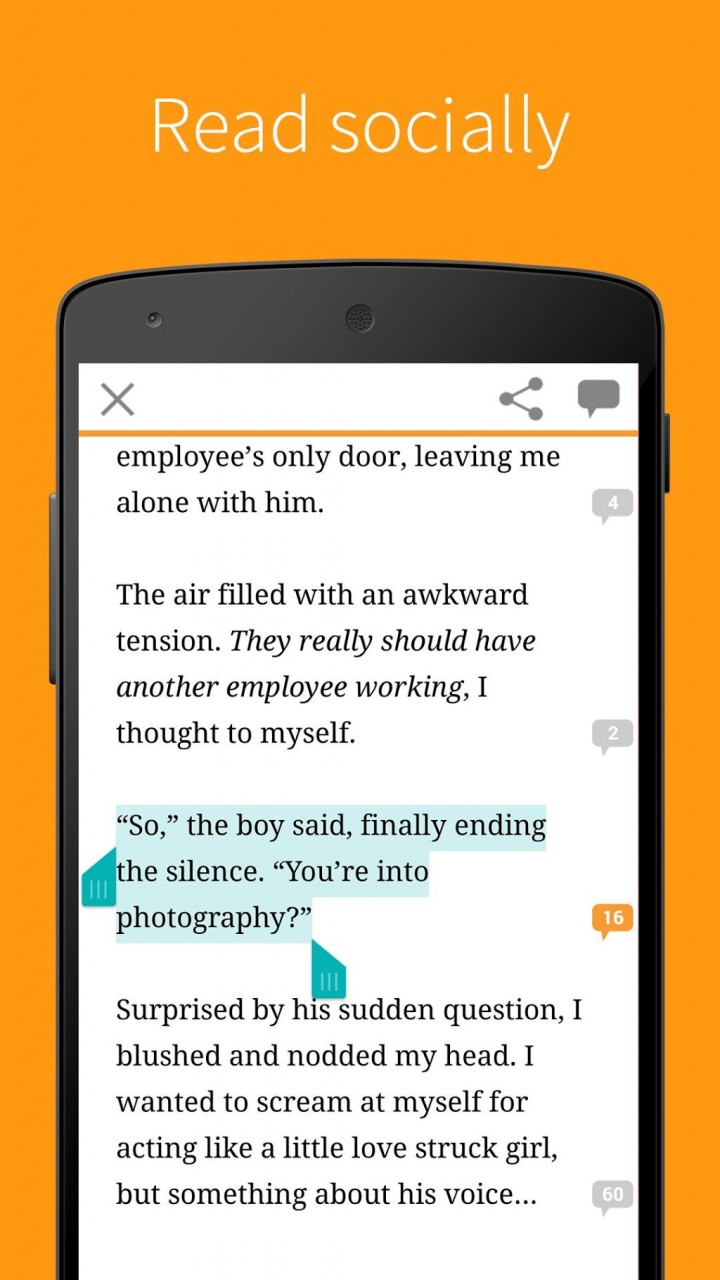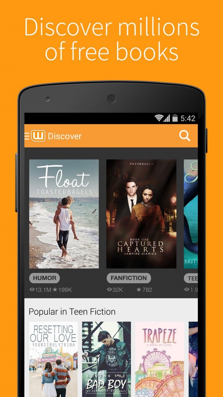 ★ ★ ★ ★ ★ Wattpad★ ★ ★ ★ ★ Join millions who love Wattpad - the world's unlimited, ever growing library of FREE books and stories. RANKED IN TOP 5 BOOKS APPS FOR 3 YEARS! • Pick from over 10 million FREE books & stories: the best of sci-fi, fantasy, mystery, romance, fan fiction, thrillers, and so much more! • Connect with your favorite writers, including Margaret Atwood, Paulo Coelho, and thousands of aspiring writers from across the globe. • Get book and story updates directly from authors • Read offline and customize your reading settings to personalize your experience • Synchronize your Wattpad library between your phone, tablet and wattpad.com • Write stories and publish them for others to read Reviews: Wattpad has been featured in publications like The New York Times, MacWorld, The Guardian and Washington Post. Here's what people are saying: ★ "Wattpad opens the doors and enlarges the view in places where the doors are closed and the view is restricted." - Margaret Atwood ★ "Wattpad is exciting because there is the opportunity to create content with depth." - Vincent Lam ★ "I love Wattpad!!" - Thousands of user reviews Already love Wattpad? -> What are you waiting for? Download our app! -> Connect with us on Facebook (www.facebook.com/wattpad) and Follow Wattpad on Twitter (www.twitter.com/wattpad).