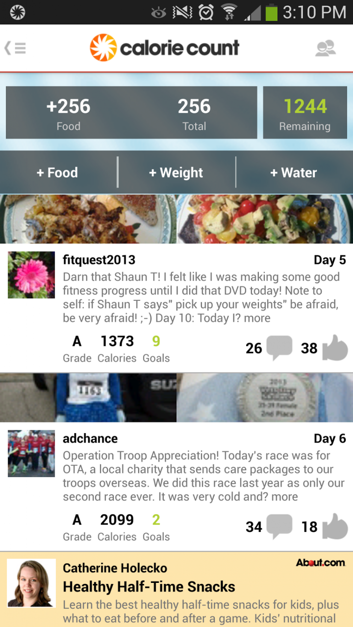 Leading calorie counting app with an editorially curated food database. Calorie Count's app is a free dieting tool that allows Android users to search and log nutritional data for over 250,000 foods, popular exercises and healthy recipes, as well as track their weight loss, all while on the go. The Calorie Count app serves as an extension to CalorieCount.com, an award-winning free online dieting service with almost 3 million members. The concept behind Calorie Count is to help people lose weight by providing a comprehensive calorie counter and nutritional analysis. CalorieCount.com is well-known for its supportive and vibrant community and numerous social features, including forums, groups, journals, and Facebook Connect integration. Key features of the Calorie Count app include: - An easy-to-use graphical dashboard that allows you to navigate through the app while being able to quickly visualize your dieting progress. - One of the most comprehensive nutritional analyses of food consumption against daily targets among calorie counting Android apps. - The ability to quickly search and log more than 250,000 food items. - Tools to view current and past food, activity and weight logs. - Logging-by-voice (speak: one bagel, two ...) - Barcode Scanner to make logging foods simple. - Compare your intake and daily burn expenditure using our net calorie gauge - Access to Calorie Count's daily blog (www.caloriecount.com/blog) to help you stay motivated and informed. - The ability to record daily weight and view charts to measure your body's progress against weight loss goals. - Your CalorieCount Member account will be automatically updated whether you log information through a computer or the Android app. - Support for English and Metric units. Calorie Count has been featured in: - Marie Claire - All You Magazine - MSNBC - People Magazine - In Touch Weekly Learn more at: http://www.caloriecount.com/mobile