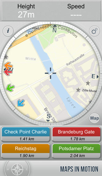 This application will guide you through Berlin but you’ll remain the boss. Go wherever you want to go and feel free to lose yourself. Thanks to this app you will always be able to identify your exact location and find your way through the city. -Instantly locate the nearest metro station or Cycle Hire station. -Store your position so that you can return to it later. -Find a restaurant, bar or museum in the area. -Get your bearings and know in which direction you are heading. This is an offline application; an internet connection is not necessary, nor is a fixed data package. The database contains over 22000 stored locations; just type a name into the search box and there is a very high chance that the application will find it for you. Zoom in and out in order to better visualise your location in a neighbourhood or in broader surroundings. The application works with the Iphone 3GS, Iphone 4 and 4S, iphone 5 with IOS 5.0 or more. This version does not require an internet connection or Wifi. You will not be charged any roaming fees.";